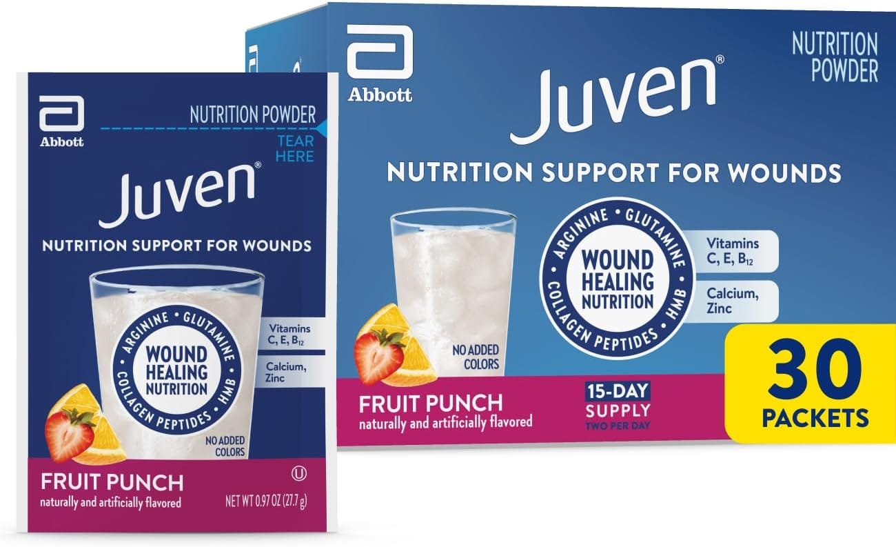 Juven Therapeutic Nutrition Drink Powder by Juven offers powerful support for wound healing, making it ideal for those in recovery and used under medical supervision. Packed with essential amino acids like arginine and glutamine, as well as HMB and collagen peptides, it strengthens muscle and boosts internal collagen formation. Enhanced with vital micronutrients including zinc and vitamins C, E, and B12, this fruit punch-flavored powder is a convenient, clinically supported choice for optimal healing. Perfect for anyone seeking advanced nutritional support when a normal diet isn’t enough.
